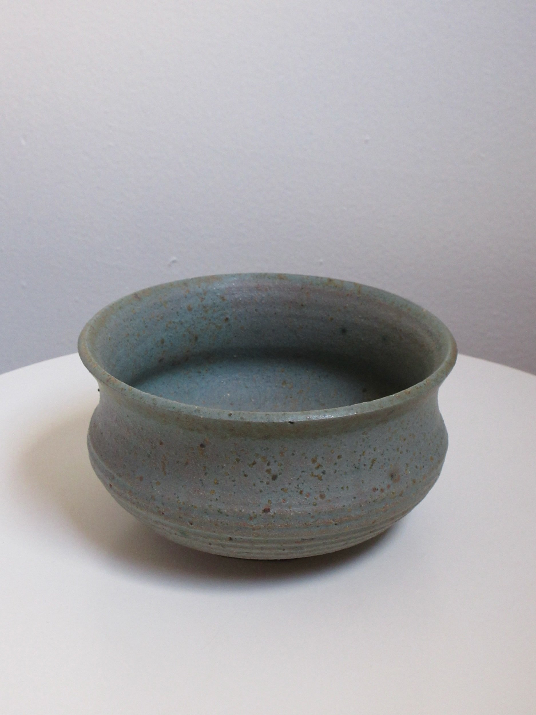 A handmade studio pottery bowl in a soft blue-gray glaze with natural speckling throughout. Wheel-thrown with an organic profile and subtle variation, this piece is perfectly sized for everyday use or styled as a catchall on a table or shelf.